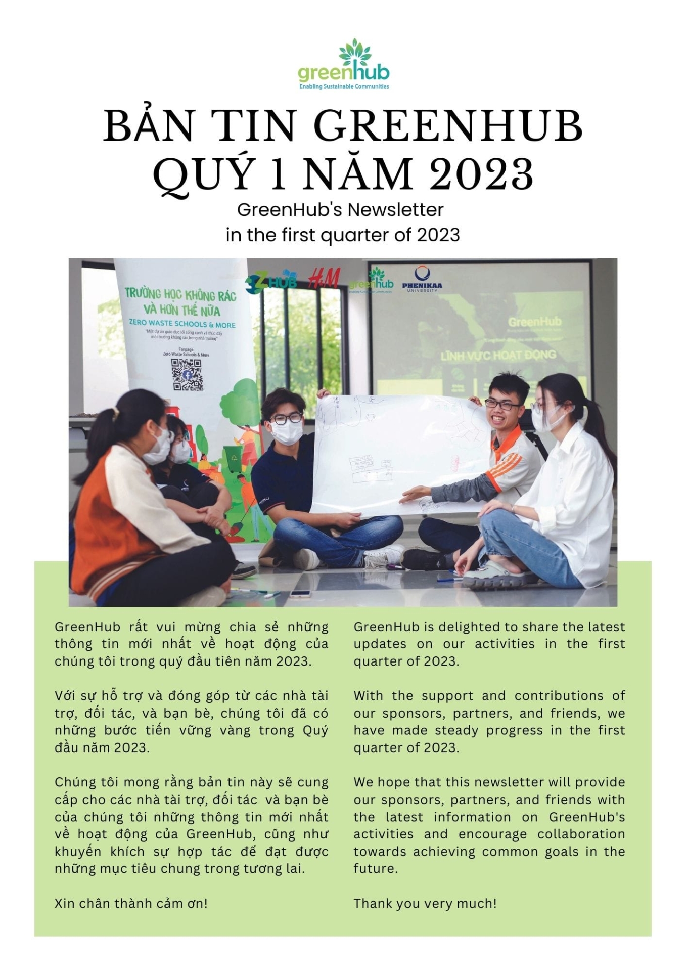 Chúng tôi mong rằng bản tin này sẽ cung cấp cho các nhà tài trợ, đối tác và bạn bè của chúng tôi những thông tin mới nhất về hoạt động của GreenHub, cũng như khuyến khích sự hợp tác để đạt được những mục tiêu chung trong tương lai.