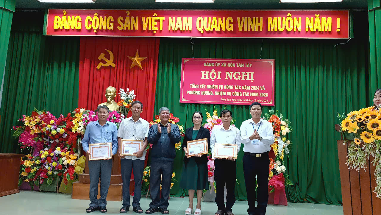 Hình ảnh: Cô Lành nhận giấy khen thưởng Mô hình Dân vận khéo tiêu biểu năm 2024 do Đảng ủy xã Hòa Tân Tây trao tặng.