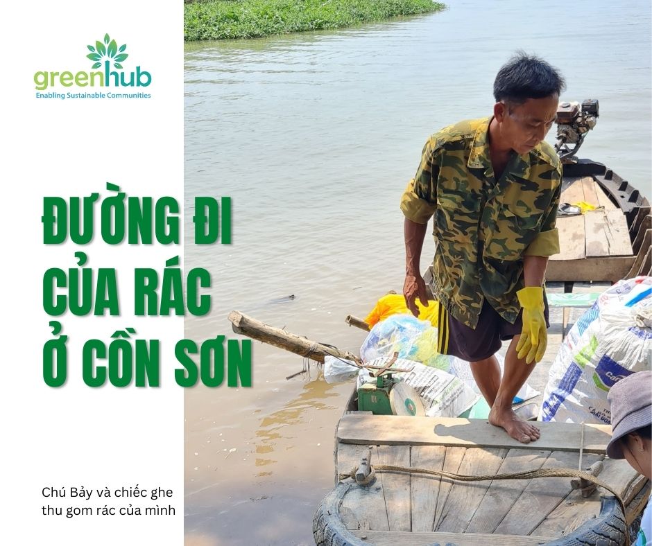Chú Bảy đến từng hộ gia đình, nhanh tay gom những túi rác khó tái chế đã được bà con phân loại và đưa xuống ghe. Đây cũng là loại rác nà trước đây bà con thường vứt xuống sông. Chiếc ghe của chú kêu phành phạch, chở những túi rác được buộc chặt, luồn lách dọc theo con kênh nhỏ nước đục ngàu tới điểm tập kết. Số rác này được chú cân cẩn thận để nhập vào kho dữ liệu, sau đó, một chiếc tàu chở rác của Dự án “Vì sông Mê Kông không rác” sẽ chở số rác này từ điểm tập kết trên cồn Sơn vào bờ để xử lý.