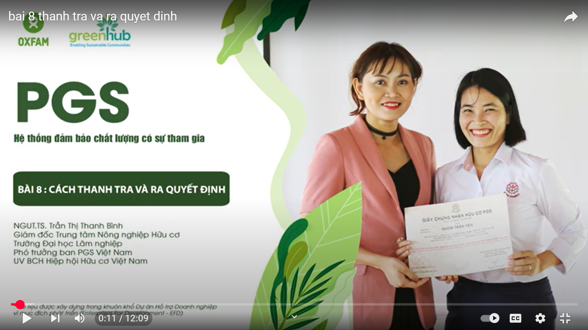 Khóa học về Hệ thống giám sát chất lượng có sự tham gia (Participatory Guarantee System)