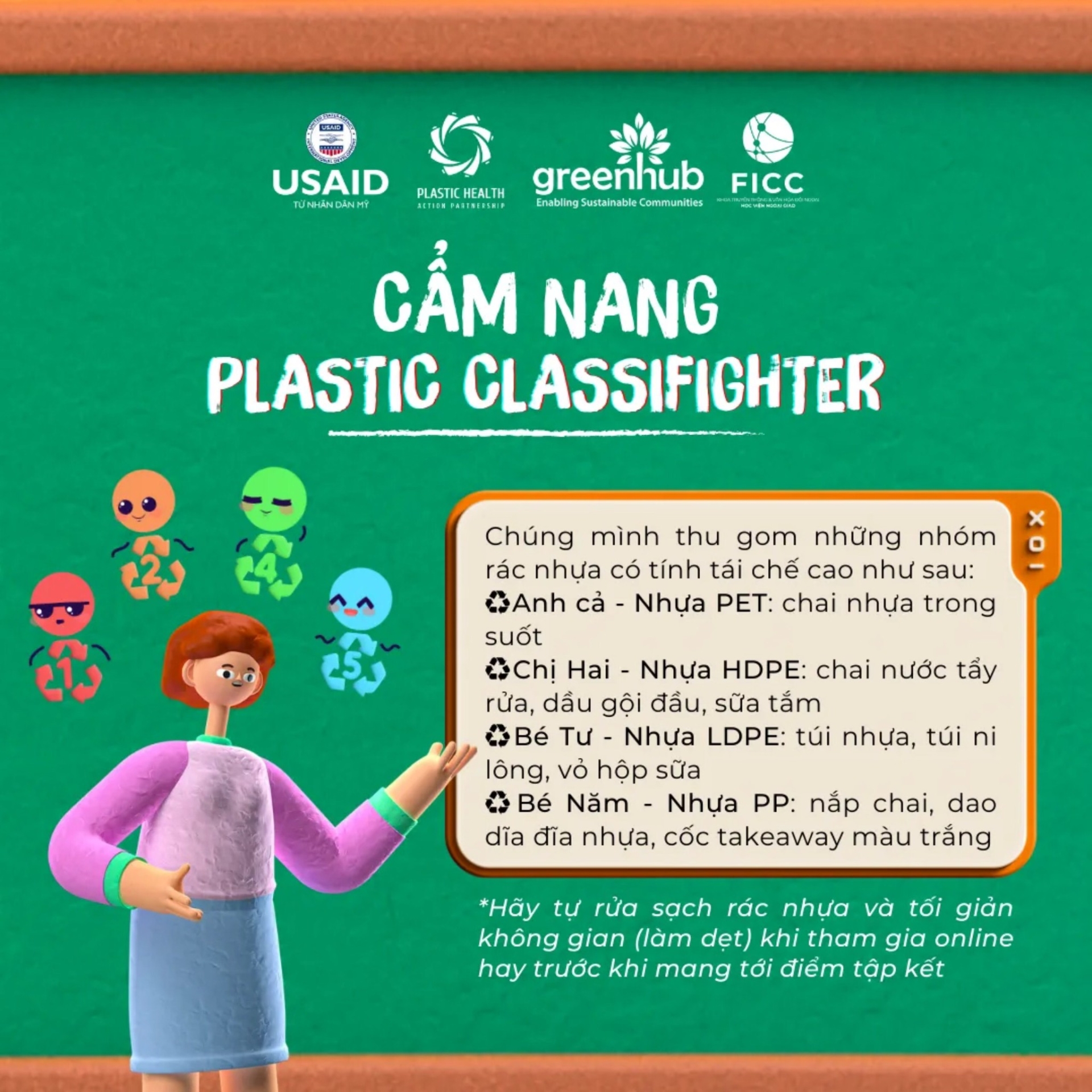 Chiến dịch phân loại nhựa, hành động vì một lối sống bền vững - Plastic Classifight là một hoạt động nằm trong khuôn khổ Dự án “Giảm ô nhiễm rác thải nhựa với các giải pháp địa phương” (Local Solutions for Plastic Pollution - LSPP) được tài trợ bởi Cơ quan Phát triển Quốc tế Hoa Kỳ - USAID thuộc chương trình "Dự án Các Hoạt động Địa phương Việt Nam vì Sức khỏe Môi trường" thực hiện bởi GreenHub cùng các đối tác. Chiến dịch hướng tới nâng cao nhận thức và thay đổi hành vi trong việc sử dụng cũng như thói quen phân loại rác thải nhựa, tái sử dụng nhựa cho lối sống xanh và sự thay đổi bền vững vì môi trường.
