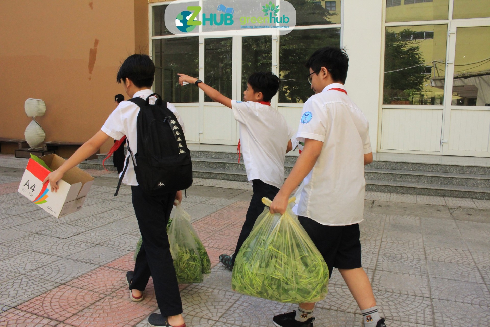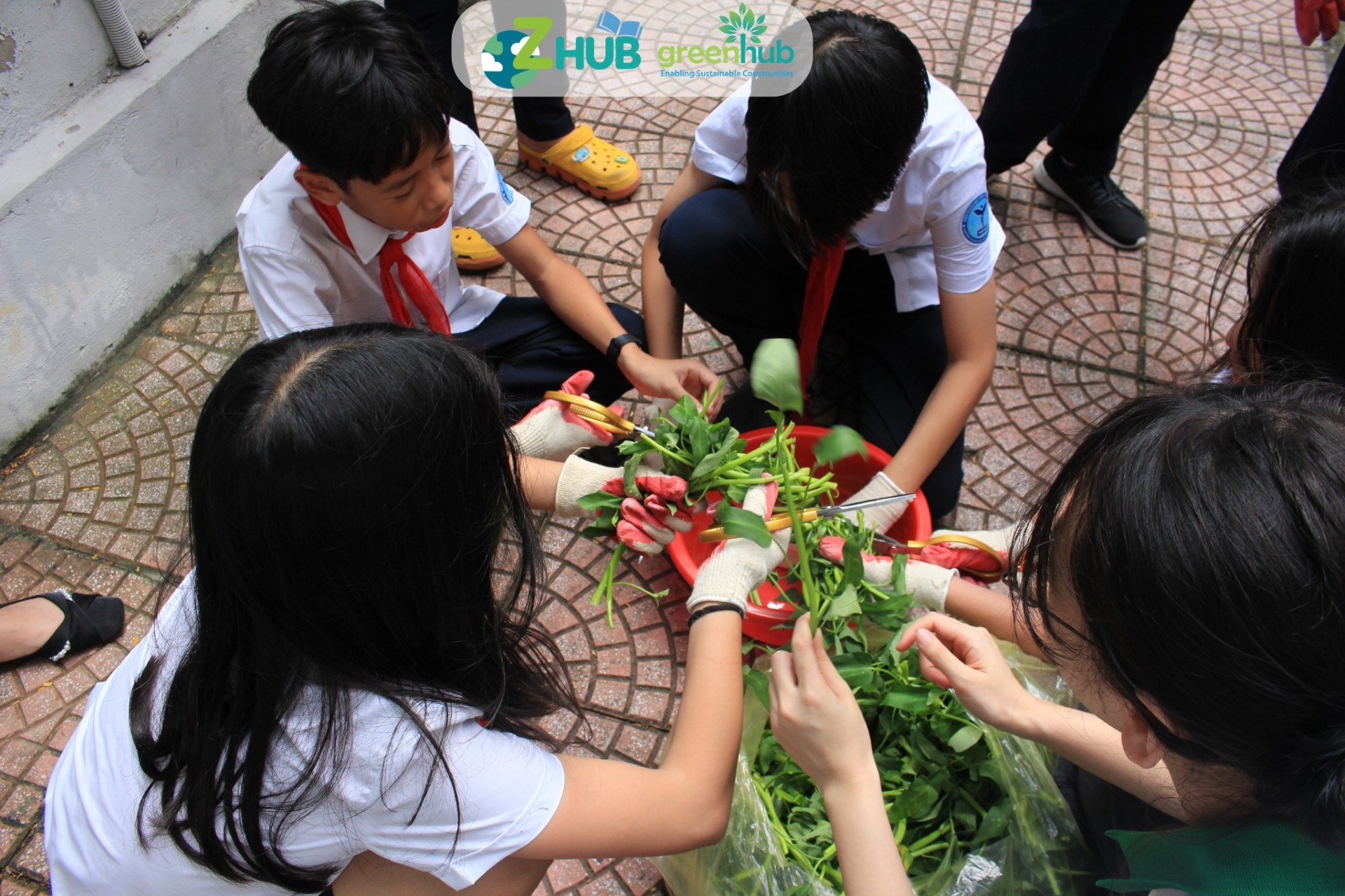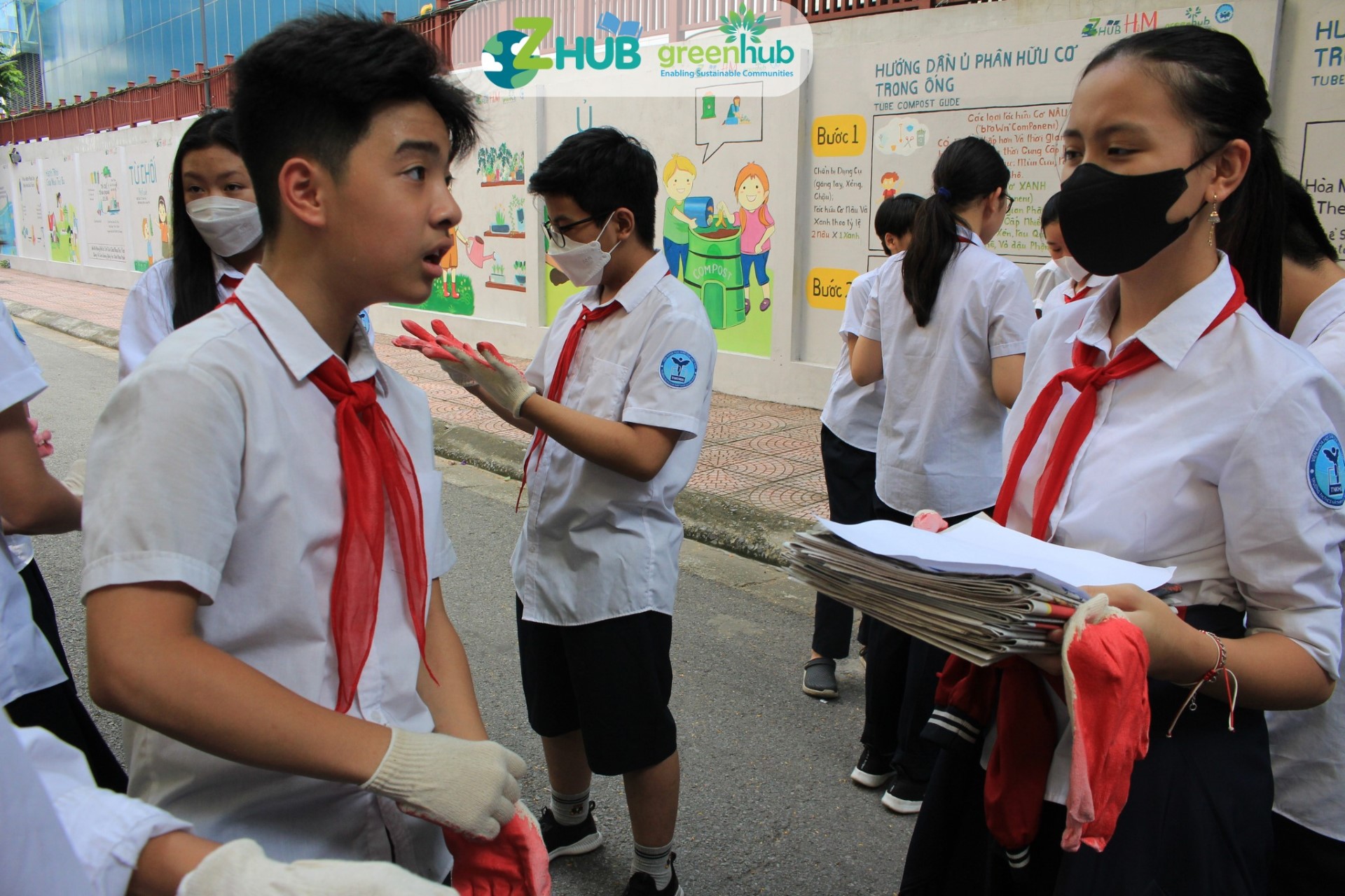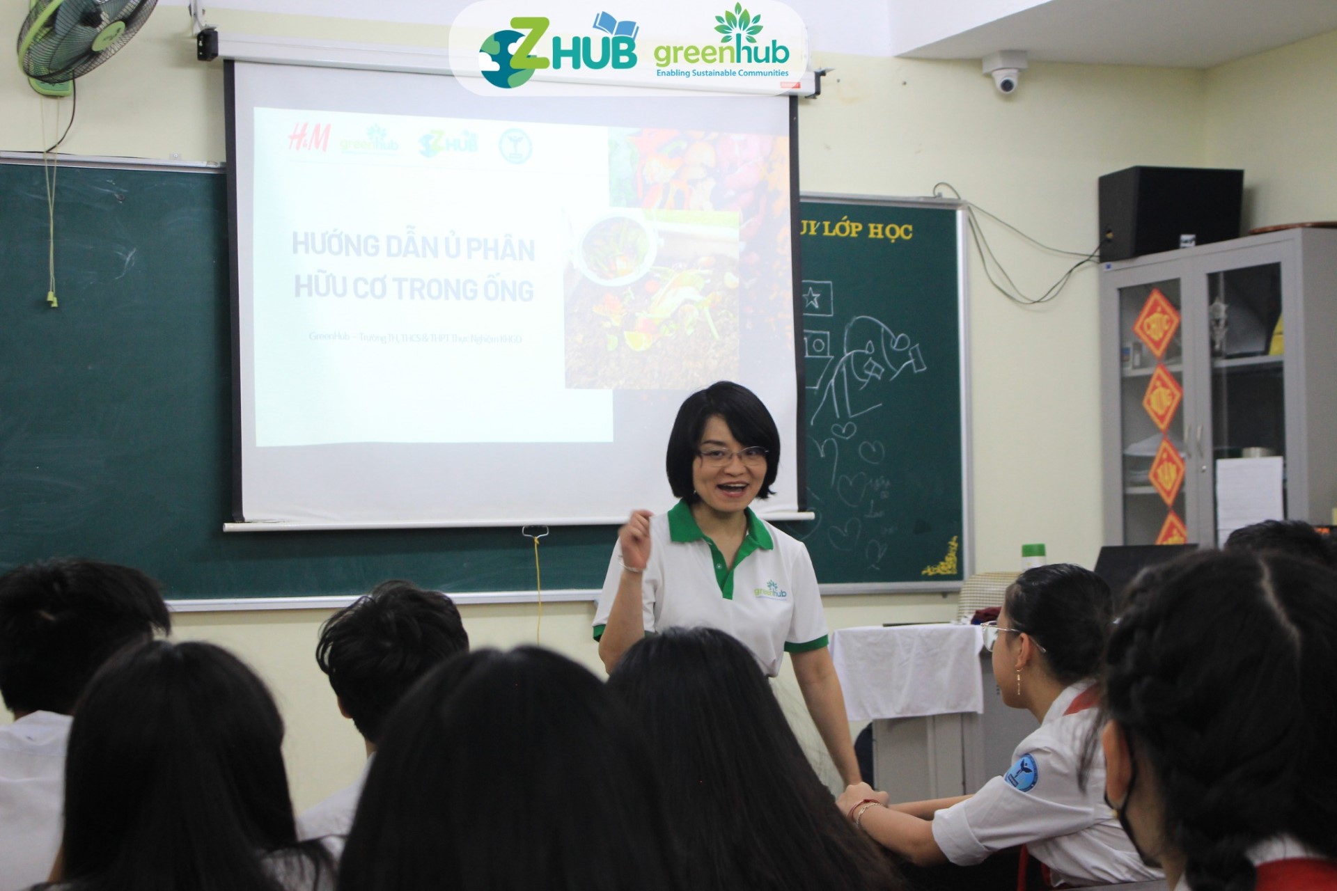 Buổi tập huấn có sự tham gia của cán bộ hướng dẫn, các em học sinh đại diện các lớp và giáo viên bộ môn hỗ trợ điều phối. Trước khi đi vào bước thực hành, các em học sinh được lắng nghe lại quy trình ủ phân hữu cơ trong ống từ các bức tranh tường mà ZHub đã thực hiện. Sau đó, các em được chia làm các nhóm để thực hiện những nhiệm vụ khác nhau trong quy trình ủ phân.