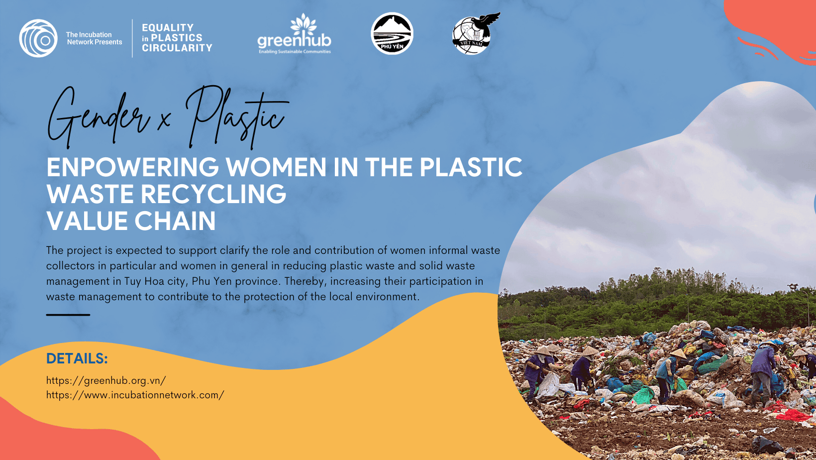 Là một tổ chức khoa học công nghệ về môi trường, GreenHub đánh giá, xem xét tất cả các khía cạnh liên quan đến vấn đề rác thải, trong đó có phân tích đến yếu tố Giới. Hoạt động thu gom và tái chế rác nhựa có sự tham gia tích cực của những người thu gom rác thải phi chính thức (thường gọi là ve chai, đồng nát,…), trong đó, phụ nữ là lực lượng nòng cốt, chiếm hơn 90% thành viên nhóm này. Tuy nhiên, vai trò của họ vẫn chưa được làm rõ và công nhận trong cộng đồng và bởi các bên liên quan. Do đó, GreenHub đã đề xuất dự án “Trao quyền cho phụ nữ trong chuỗi tái chế rác thải nhựa” (từ đây gọi tắt là dự án Phụ nữ giảm rác nhựa) được tài trợ bởi tổ chức The Incubation Network và điều phối bởi Second Muse. Dự án được kỳ vọng sẽ giúp làm rõ vai trò và sự đóng góp của phụ nữ trong quản lý chất thải rắn nói chung và rác thải nhựa nói riêng. Họ cũng sẽ được nâng cao năng lực và nhận thức về bảo vệ sức khỏe và an toàn lao động trong các điều kiện làm việc cụ thể. Những điều này góp phần tăng lượng chất thải được thu gom, tái chế và góp phần phát triển chuỗi thu gom, tái chế hiện nay.